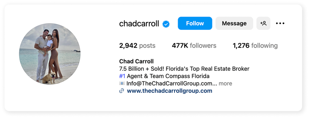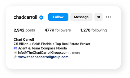 Chad Carroll built his real estate brand on results—and Instagram was already a key part of that. By posting stunning luxury listings and gaining a medium-sized following across Miami and South Florida, Chad was doing well by any standard.